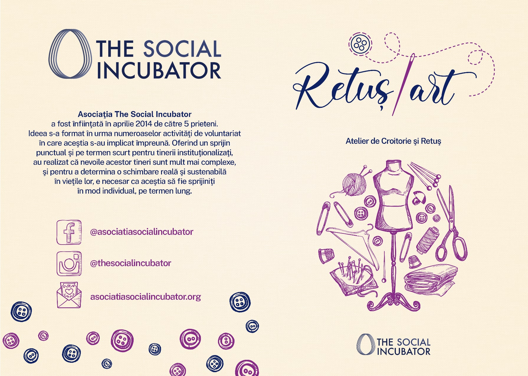 RetușART este o întreprindere de economie socială care își propune să susțină tinerii vulnerabili (cu precădere cei instituționalizați) în învățarea meseriei de croitor – retușier, iar ulterior în angajarea lor în domeniu.