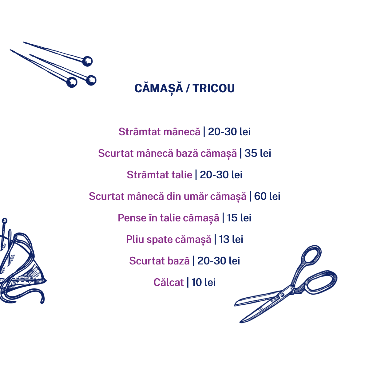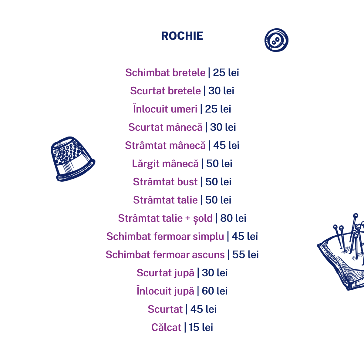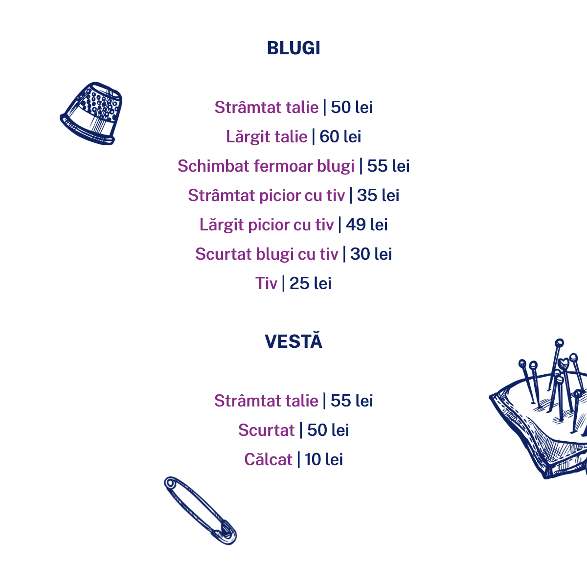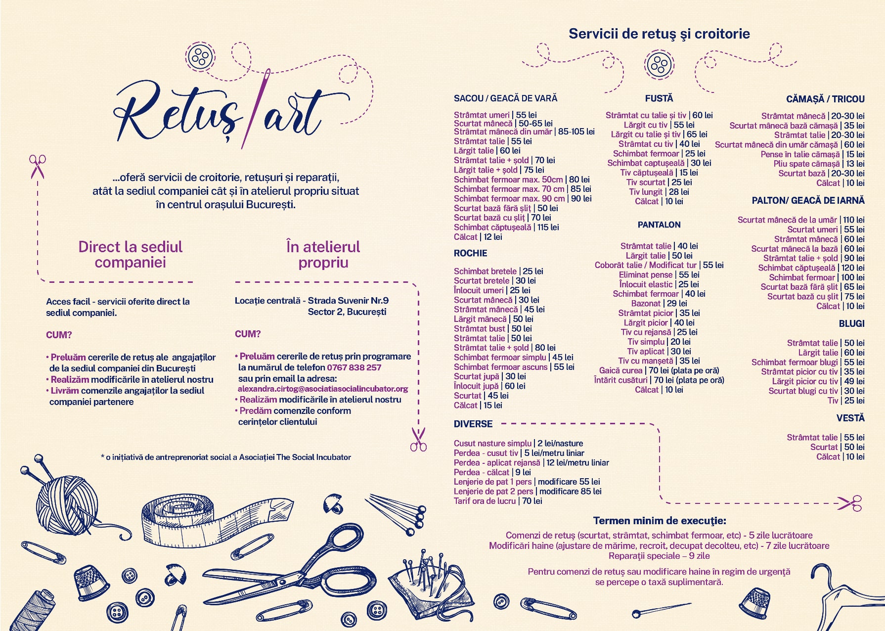 Detalii despre servicii și prețuri se găsesc în catalogul de mai jos: